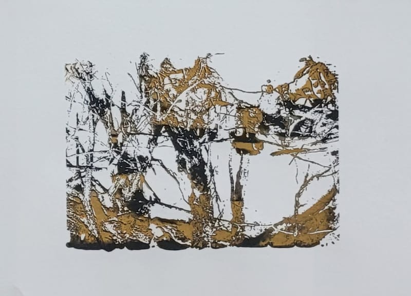 Synthetic polymer paint and silkscreen ink on Cardstock Paper